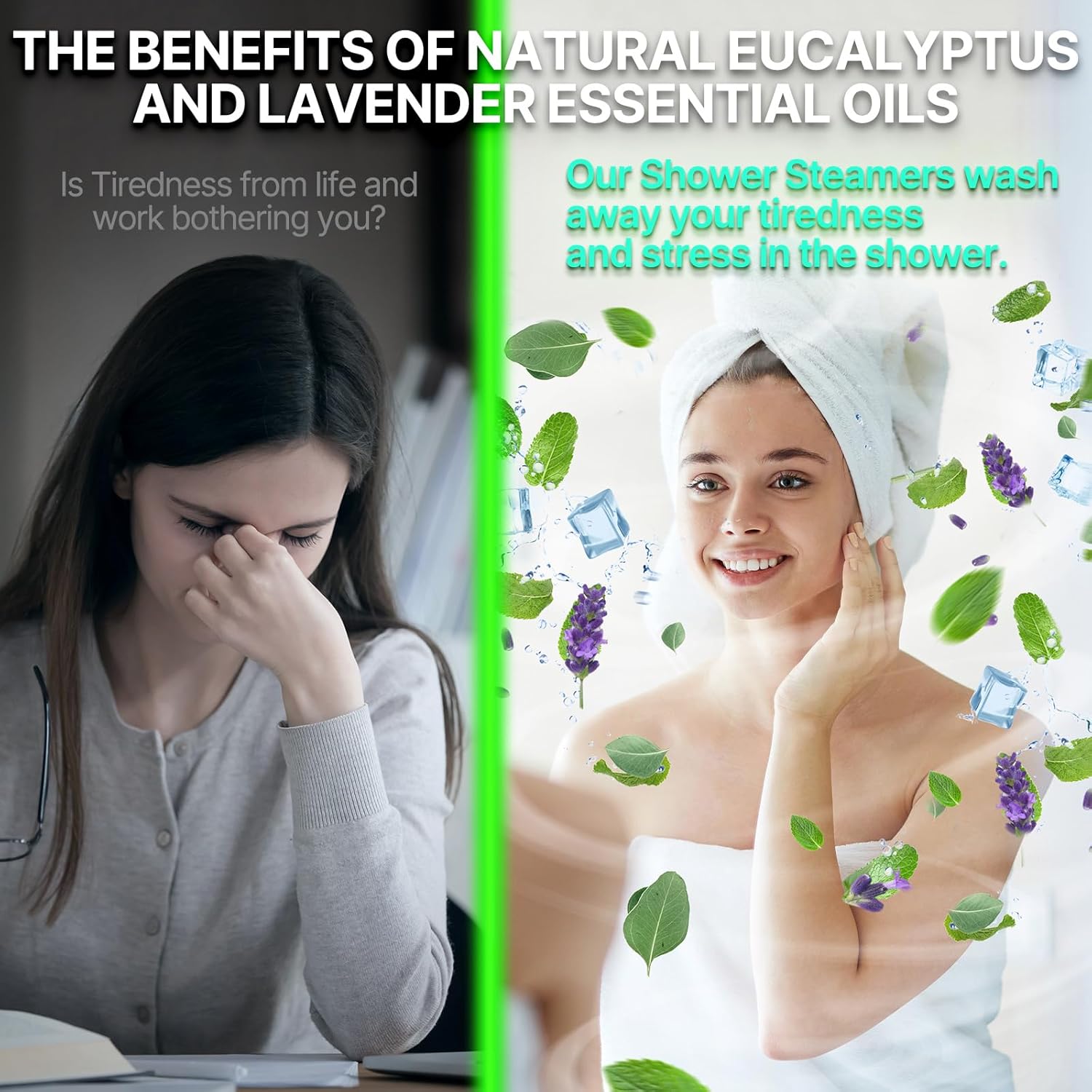 - Handcrafted Shower Steamers: Handmade by professional perfumers. The shower bombs is strong fragrance and long-lasting fragrance. The 18-pack of bath steamers includes mint and lavender shower steamers, shower steamers eucalyptus and mint, and peppermint shower steamer in three scent.