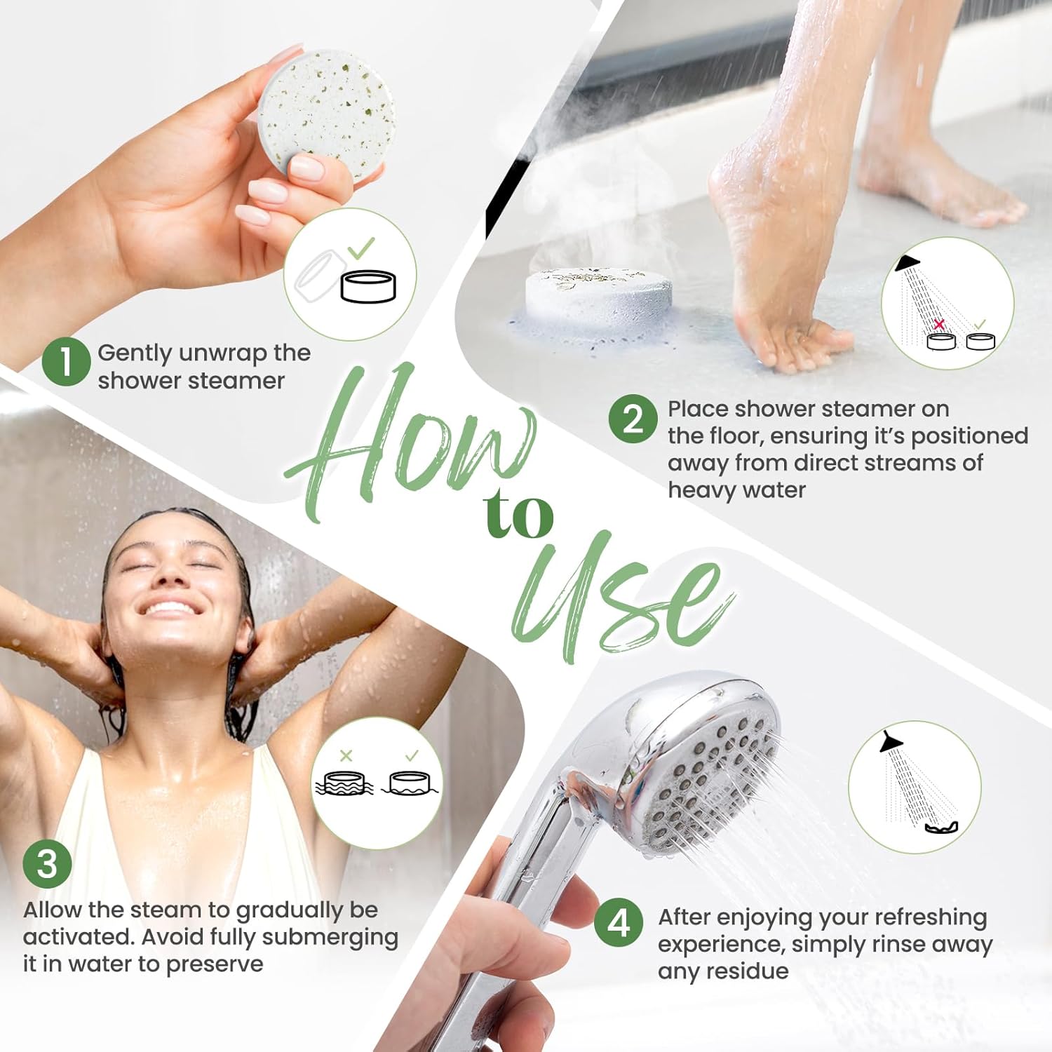 - Package Contents:BLRIET shower steamers set features 8 individually wrapped shower steamer tablets scented with cool peppermint to get relaxation and stress relief.